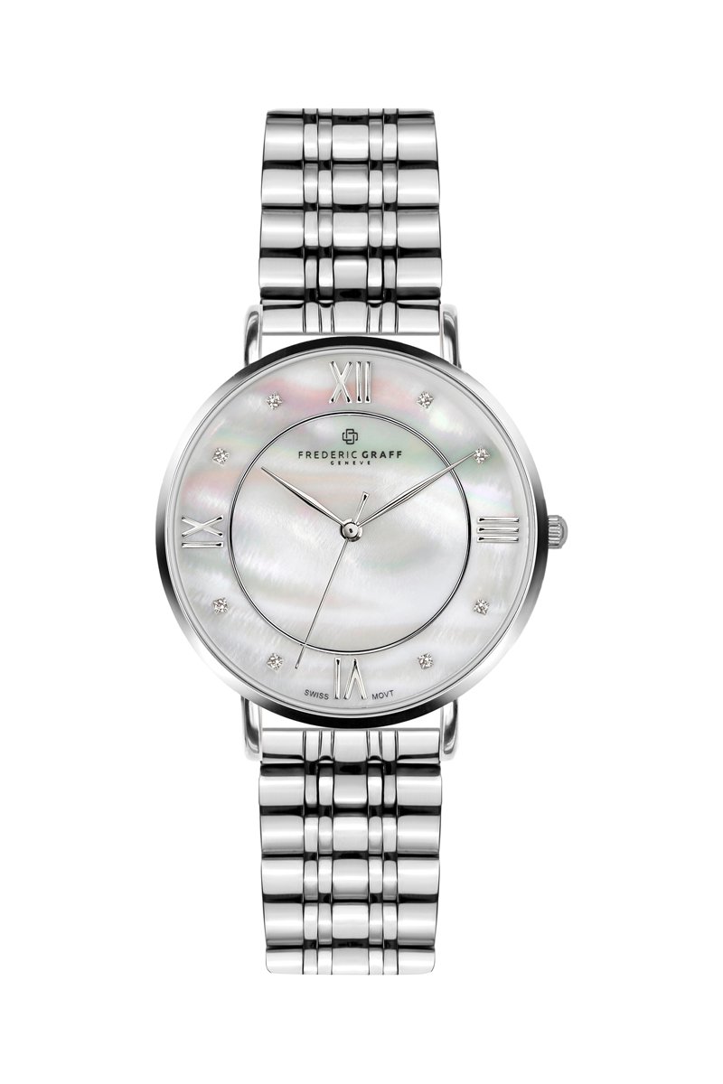 Montre à quartz en acier, plaqué ion argent et nacre Liskamm - Frederic Graff