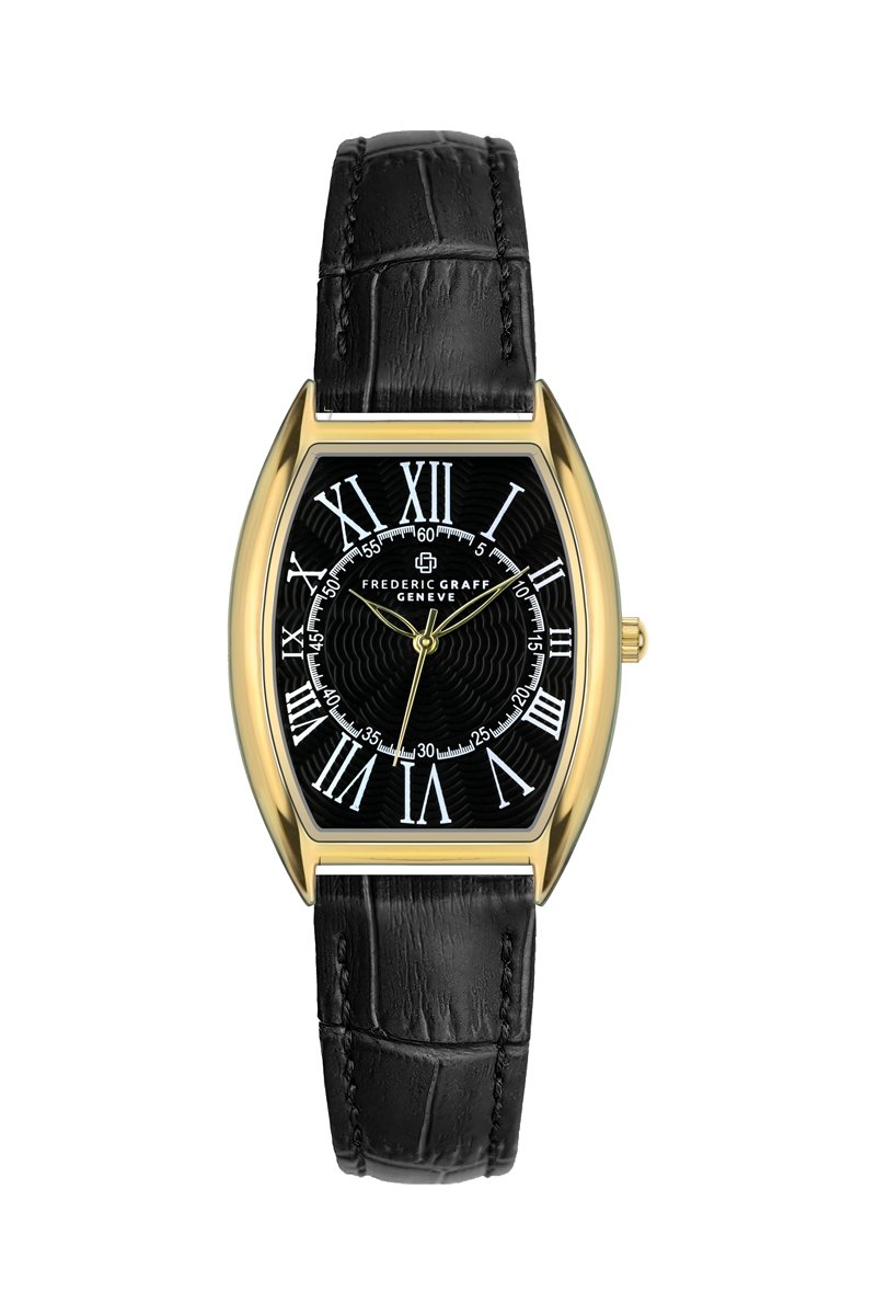 Montre à quartz en cuir - Noir et doré - Frederic Graff