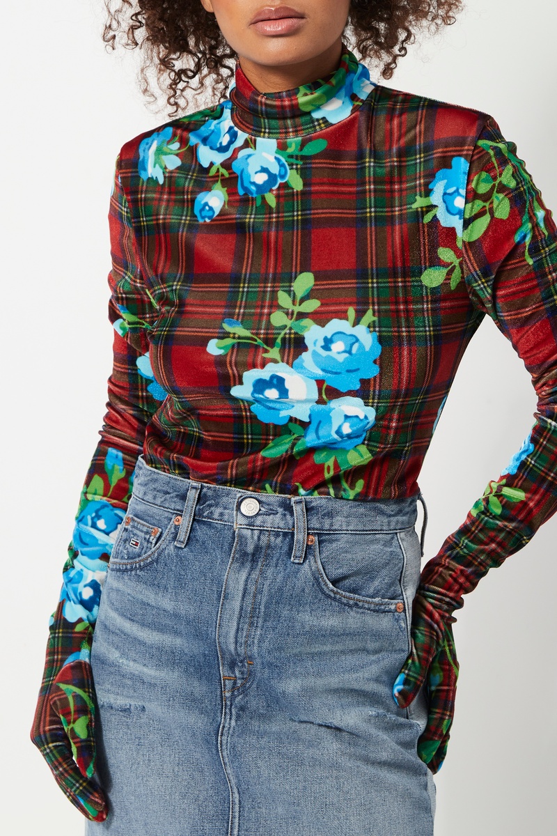 Motifs tartan et fleuris.