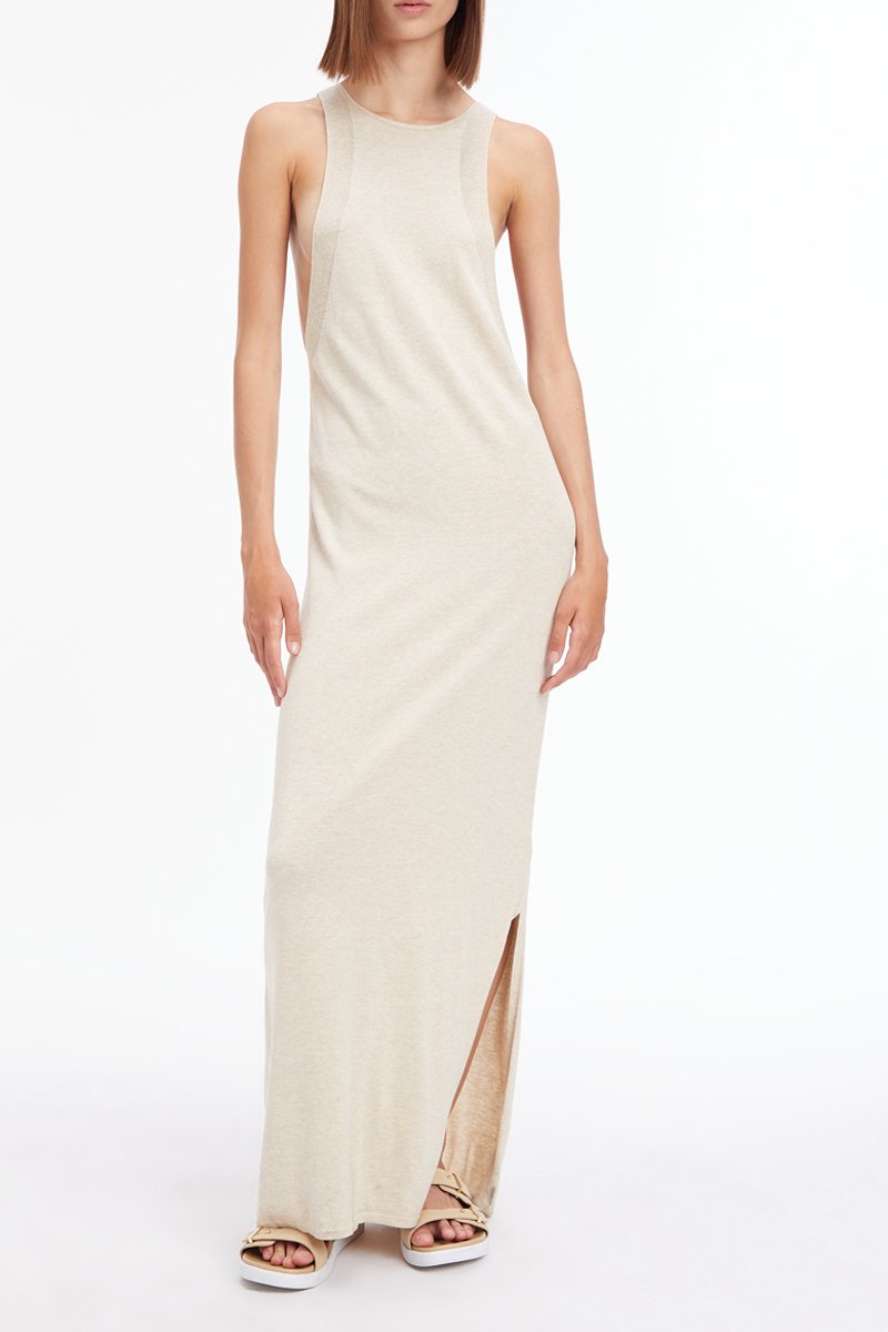 Robe longue en soie - Beige