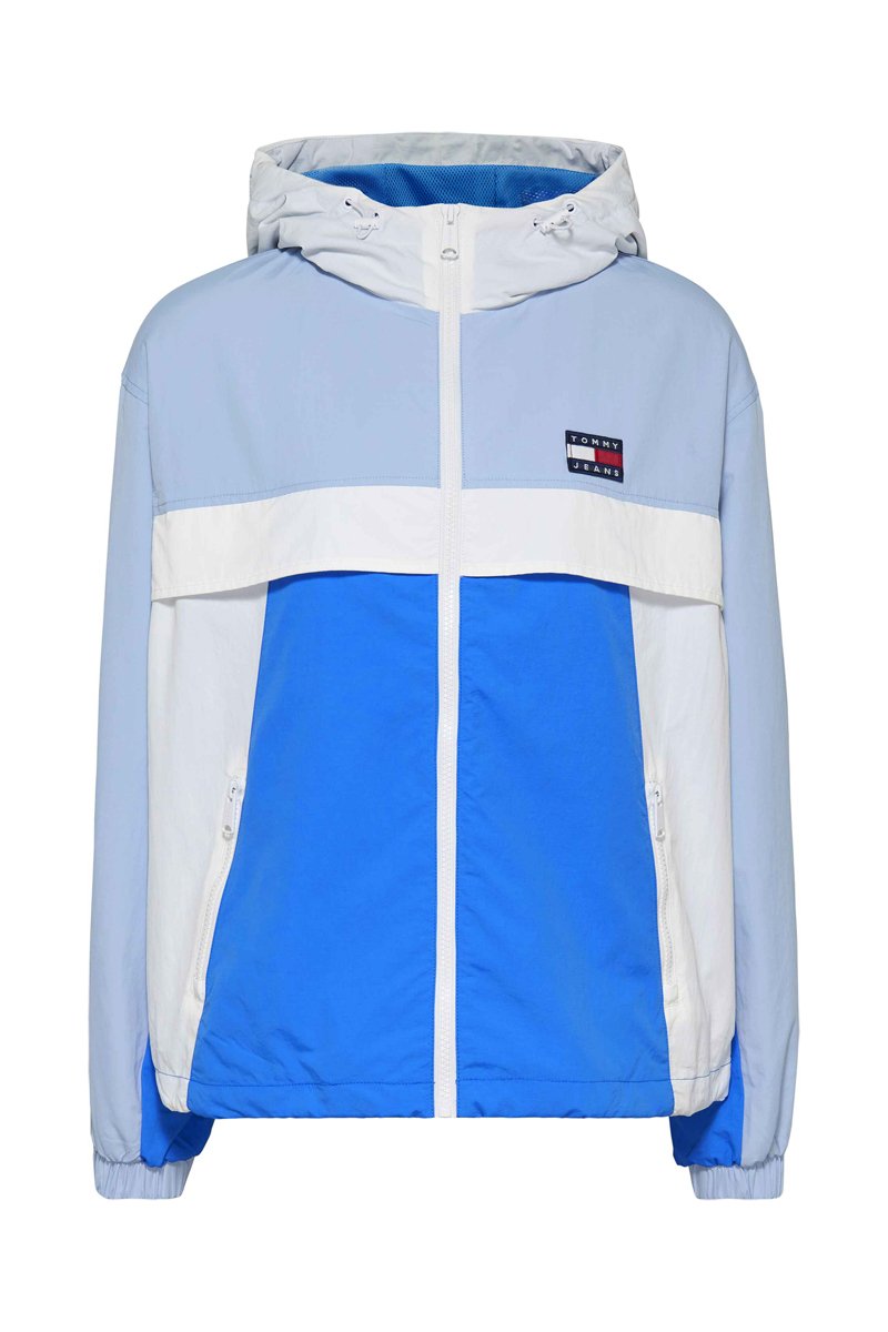 Coupe-vent à capuche avec liens de serrage et barillets.