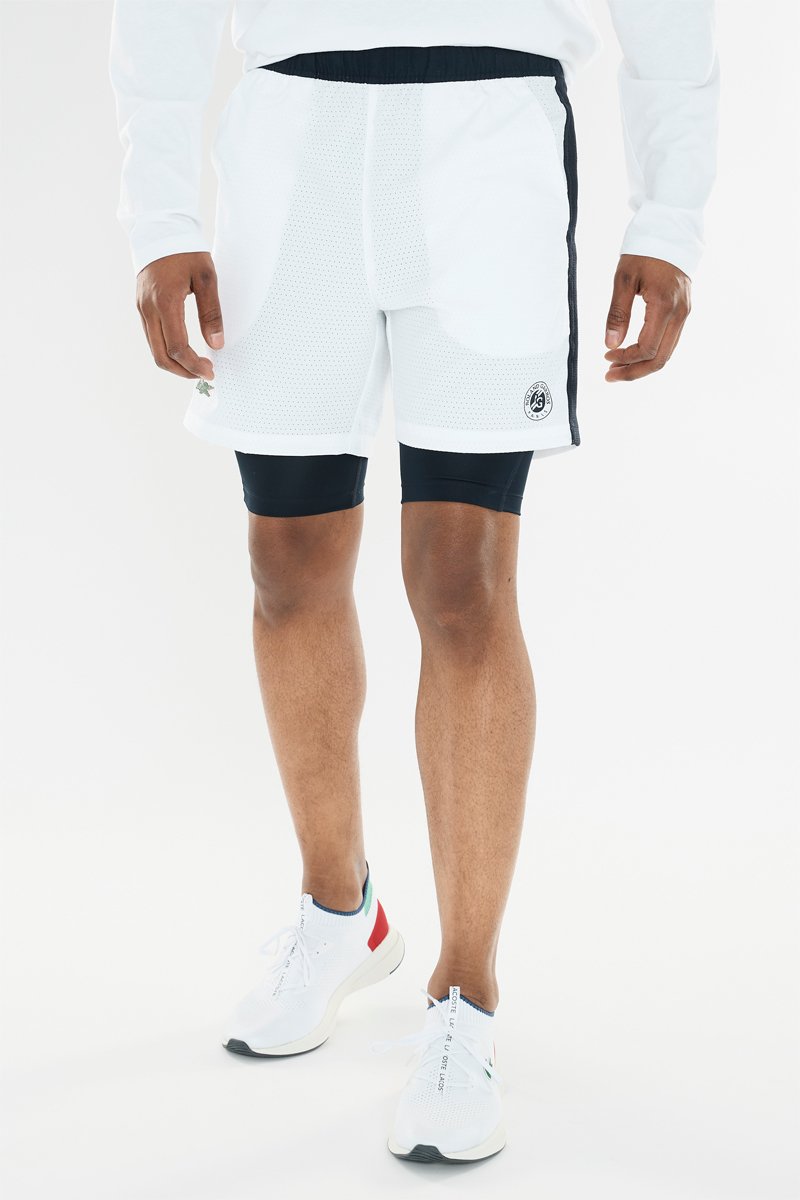 Bandes latérales contrastées et logo Roland Garros cuisse.