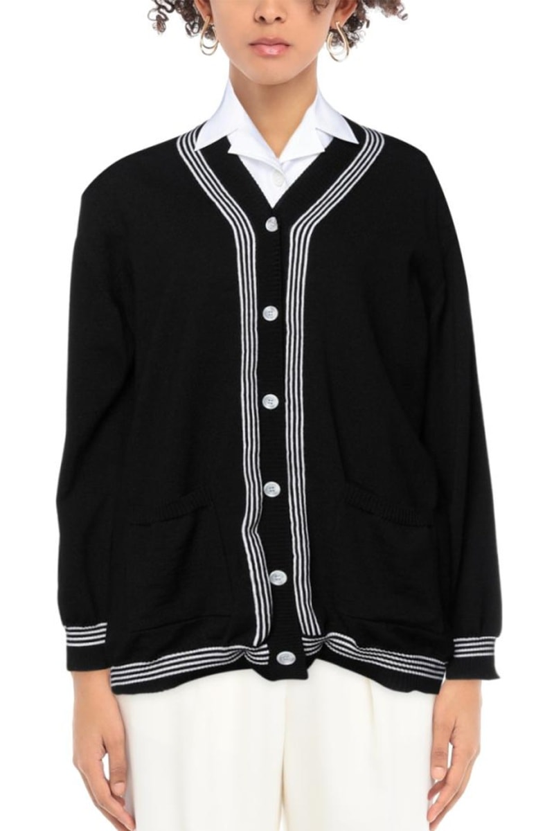 Motifs à rayures à l'encolure, sur les manches, devant et à la base.