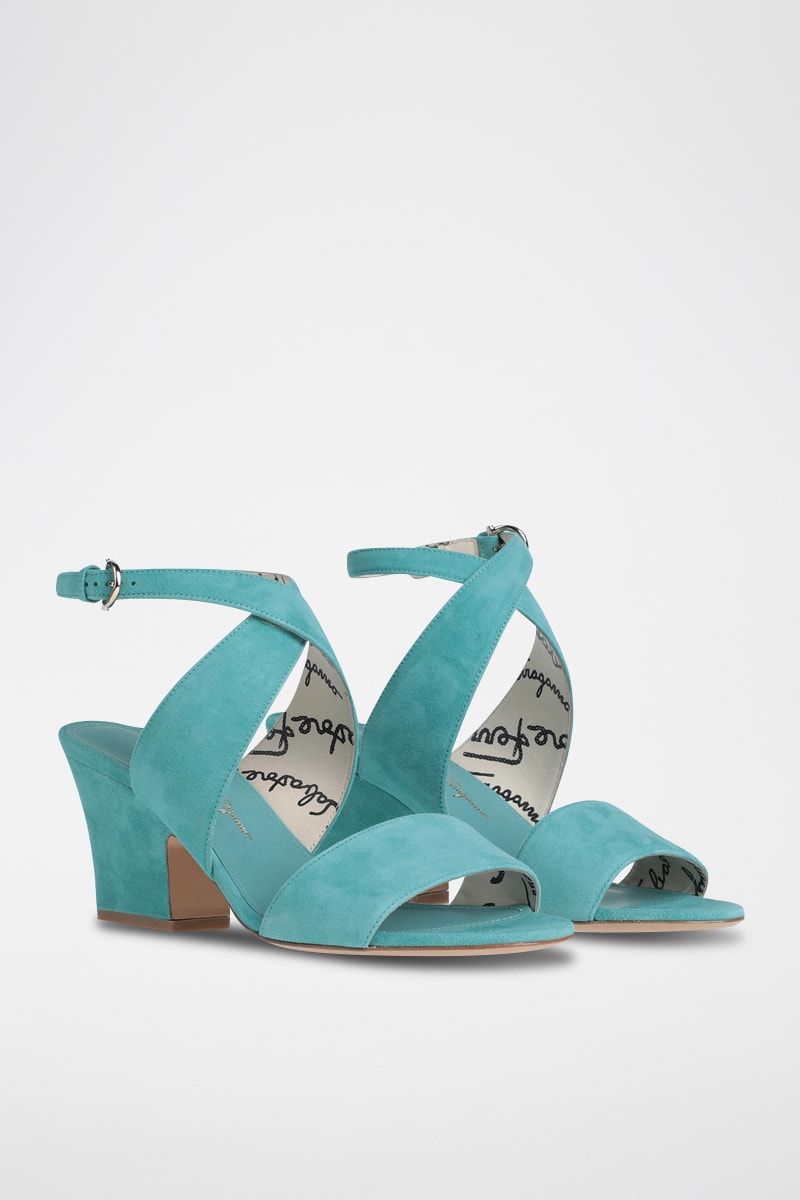 Ferragamo - Sandales à talons en cuir - Turquoise