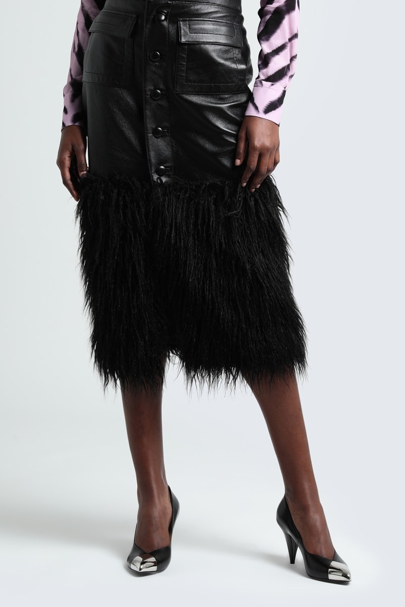 Saint Laurent - Jupe midi en cuir d'agneau - Noir