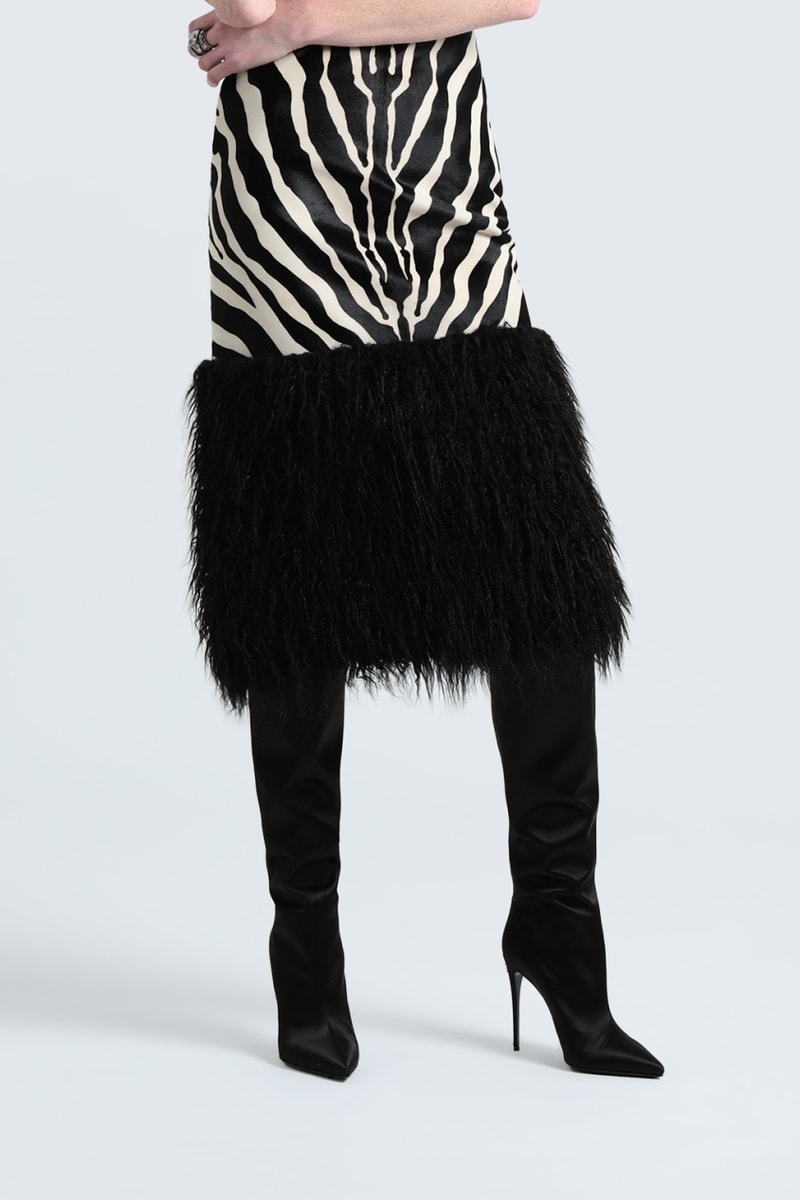 Jupe fourreau en cuir de veau et cuir d'agneau.