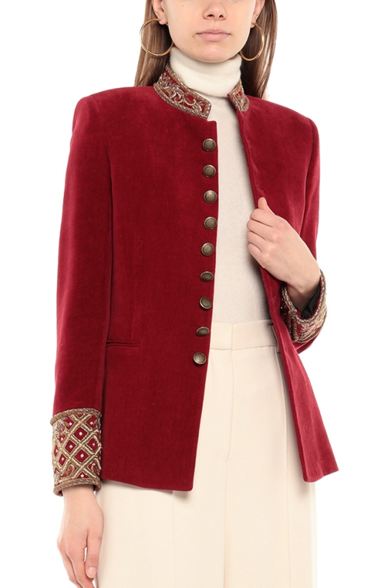 Motifs fantaisie brodés à l'encolure et sur les manches.