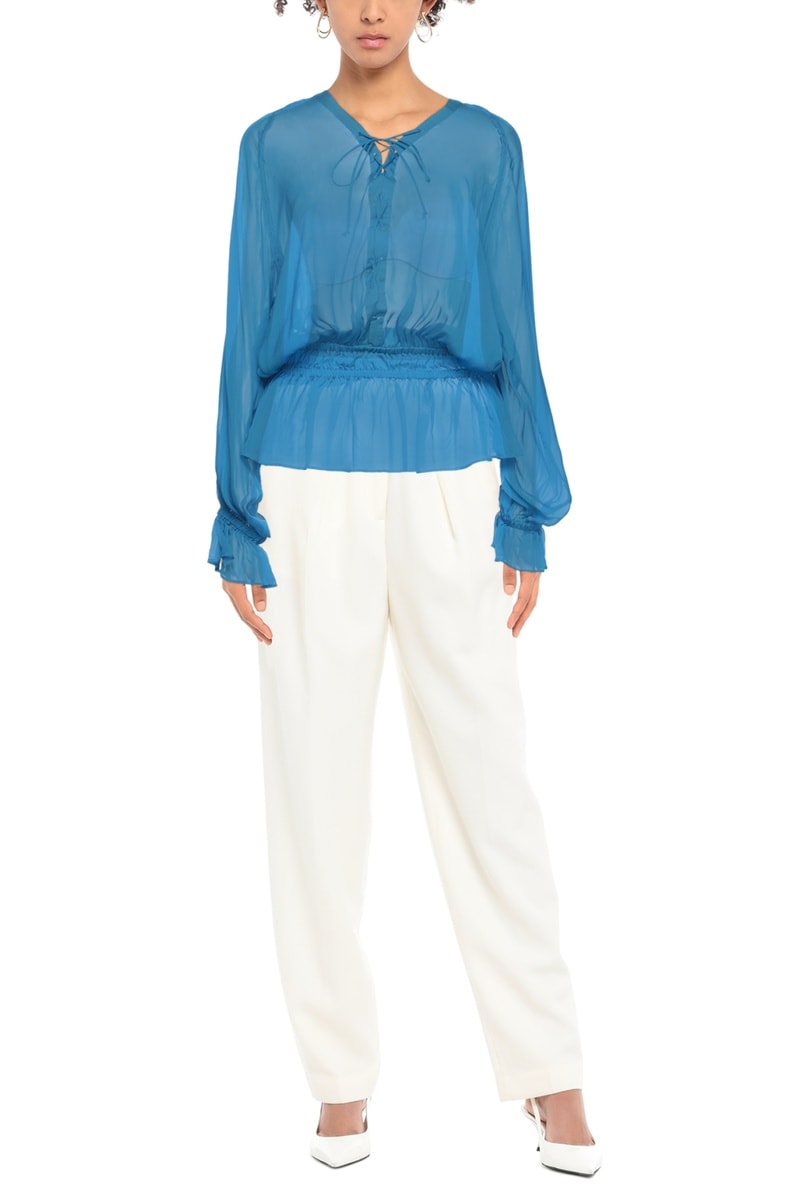 Blouse en soie à manches longues avec liens à nouer.