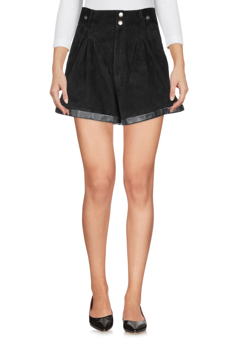 Saint Laurent - Short en cuir d'agneau nubuck taille haute - Noir