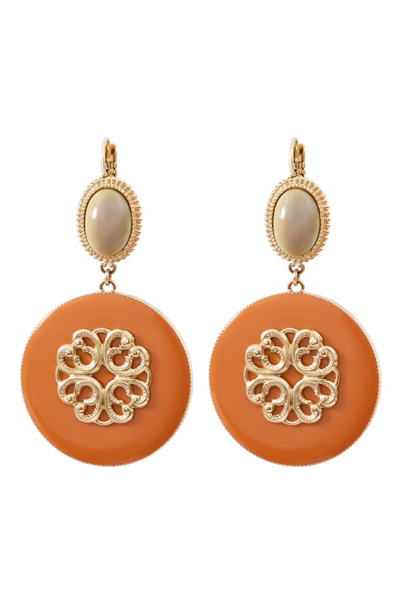 Boucles d’oreilles en dorées à l’or jaune serties d'un cabochon en pâte de verre.