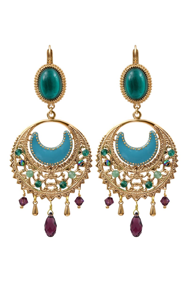 Boucles d'oreilles dorées à l'or fin serties d'un cabochon.