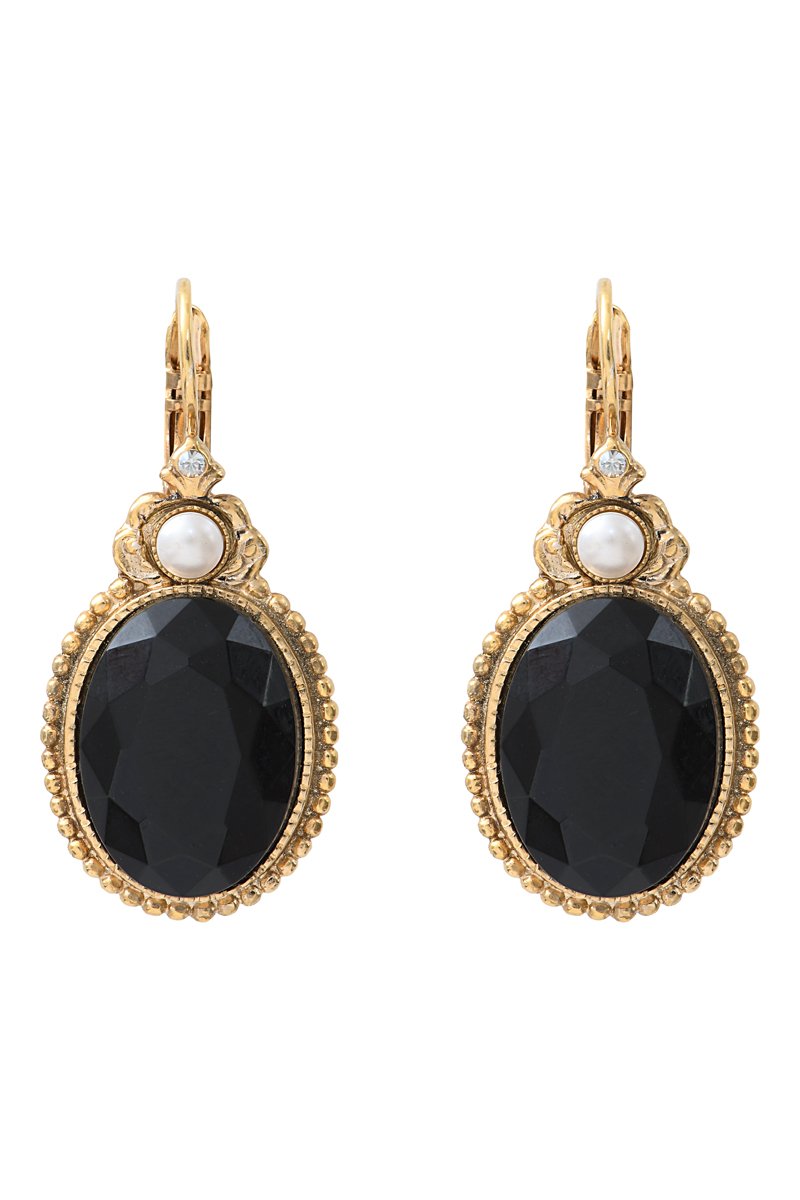 Boucles d'oreilles pendantes dorées à l'or fin et serties d'un cabochon et de cristaux.
