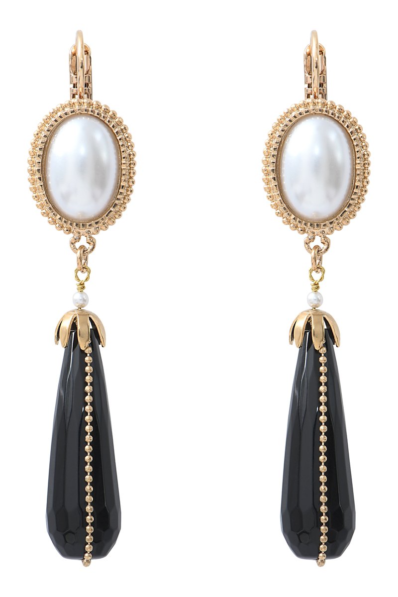 Boucles d'oreilles pendantes dorées à l'or fin et serties d'onyx.