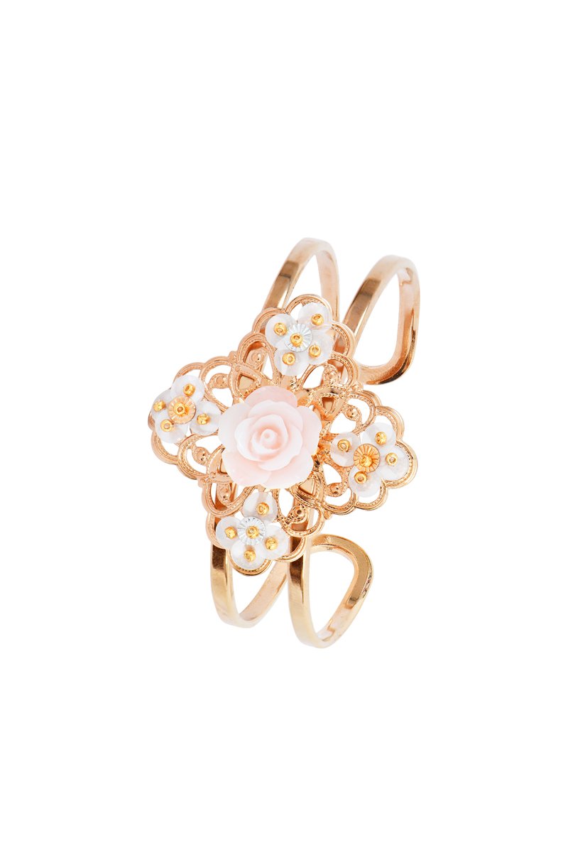 Jonc ouvert doré à l’or jaune serti de nacres reconstituées.