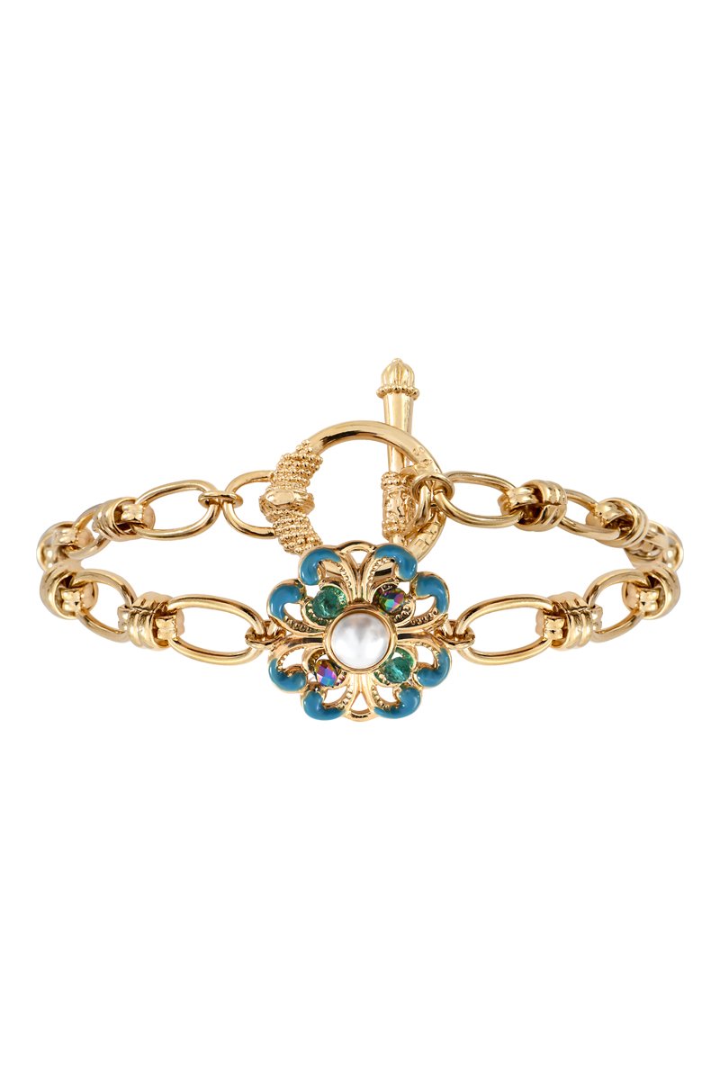 Bracelet doré à l'or jaune serti d'un cabochon.