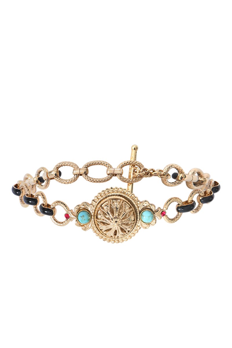 Bracelet doré à l'or fin serti d'un cabochon et de cristaux.
