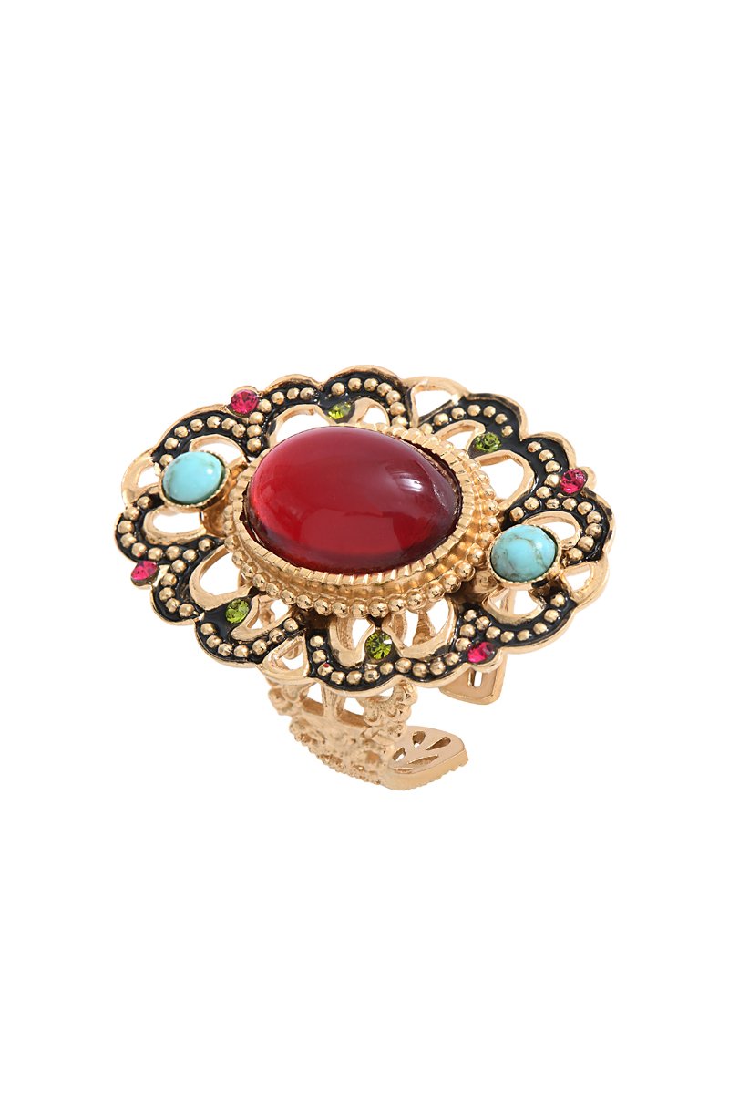 Bague dorée à l'or fin et sertie de cabochons et de cristaux.