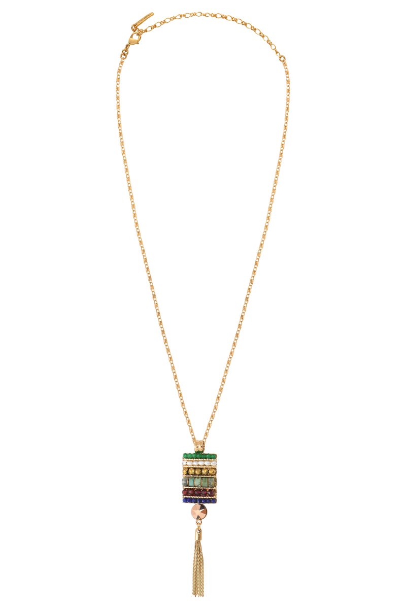 Collier doré à l'or jaune Asuka - Turquoises, lapis-lazulis, jaspes, grenats, perles d'eau douce et hématites