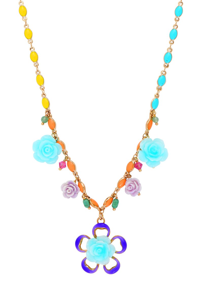 Collier doré à l’or jaune serti de nacres reconstituées, de 4 aventurines et de cristaux.