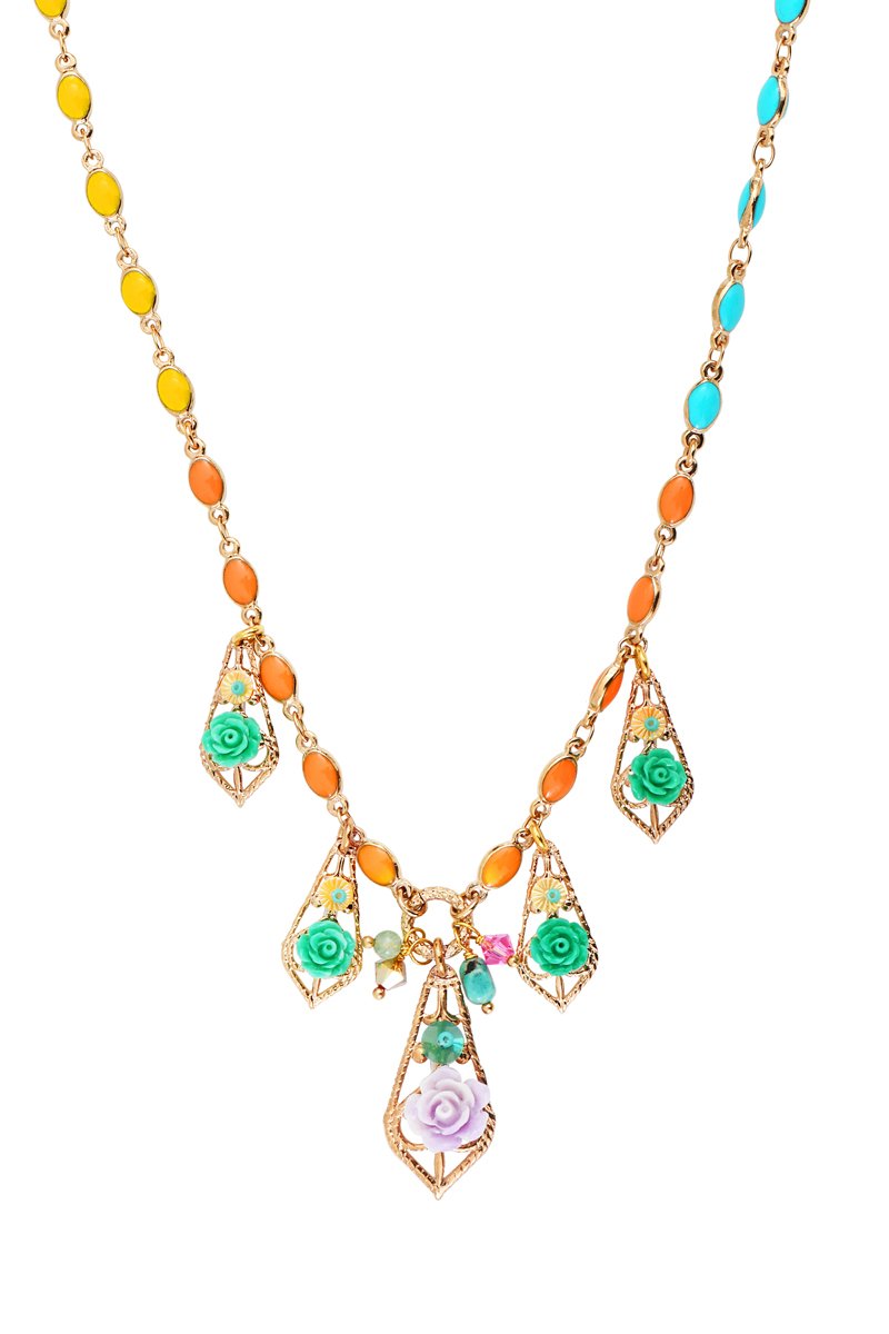 Collier doré à l’or jaune serti de nacres reconstituées, de cristaux et d’aventurines.