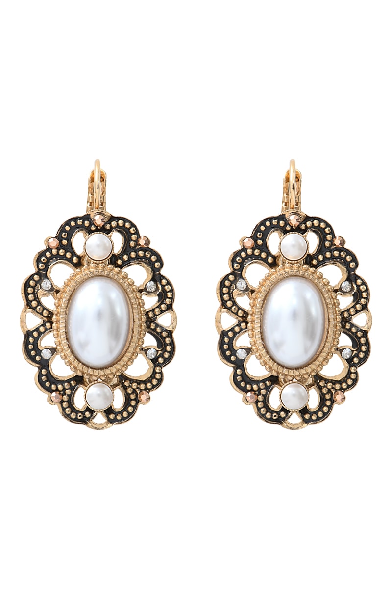 Boucles d’oreilles dorées à l’or fin jaune Ultima - Onyx et perles de culture d'eau douce
