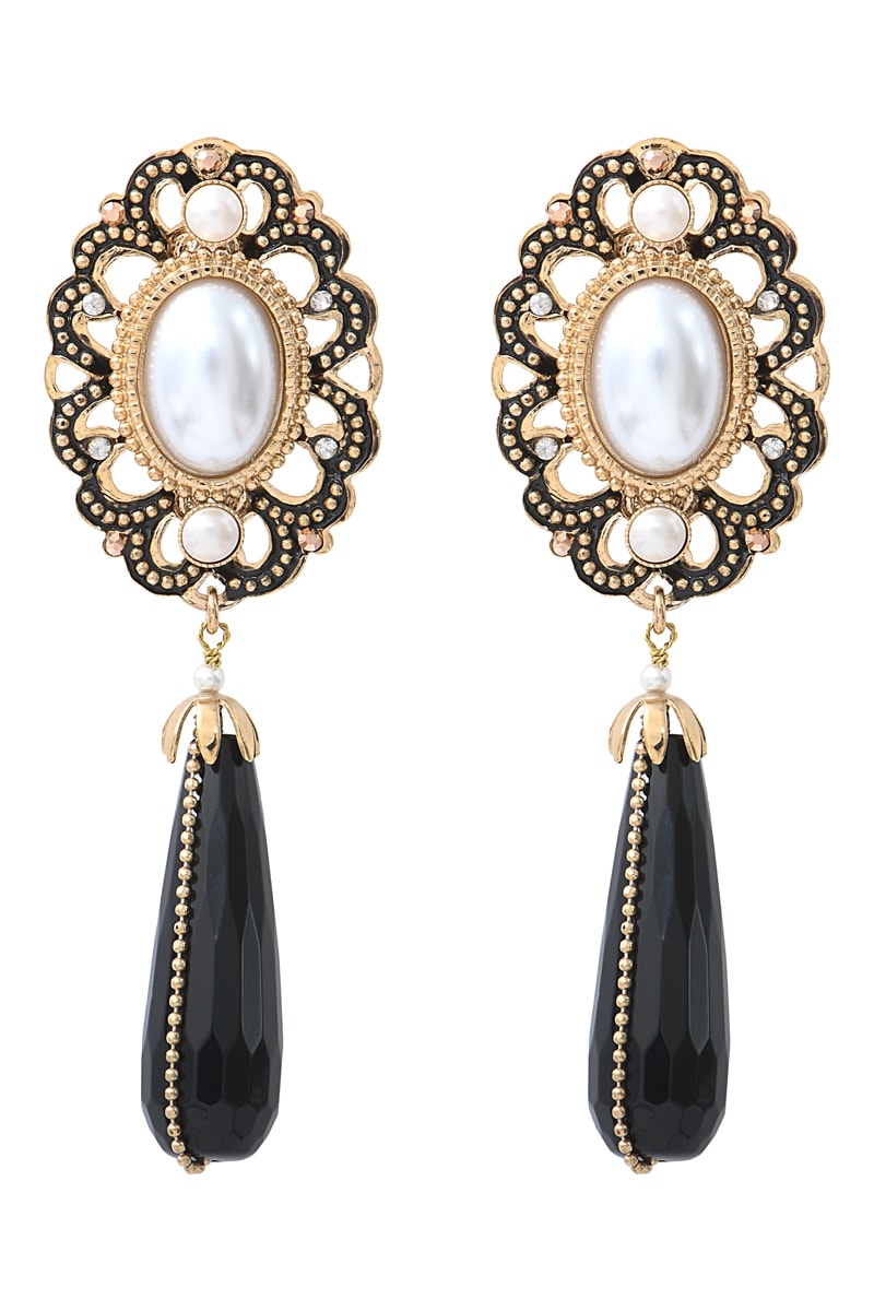 Boucles d'oreilles dorées à l’or fin jaune Ultima - Onyx et perles de culture d'eau douce