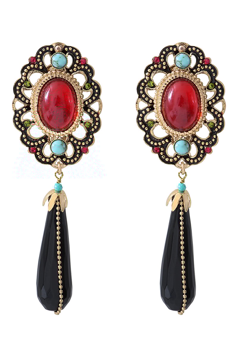 Boucles d'oreilles dorées à l’or fin jaune Ultima - Grenats, onyx, péridots et turquoises