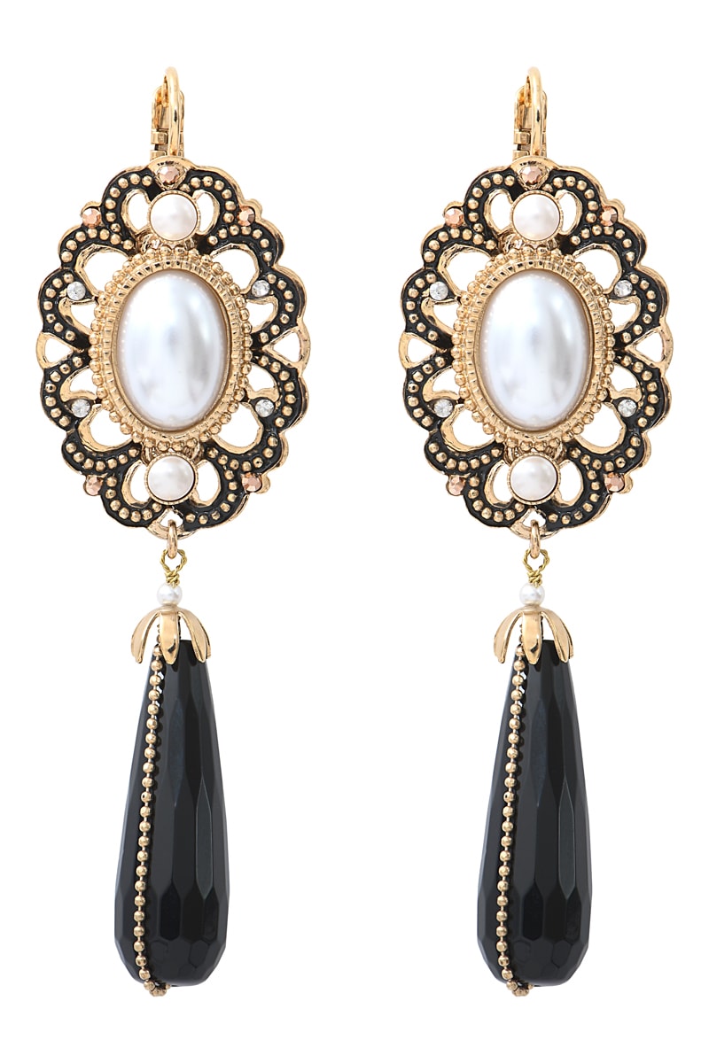 Boucles d'oreilles dorées à l’or fin jaune Ultima - Onyx et perles de culture d'eau douce