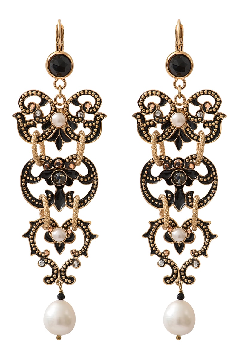Boucles d'oreilles dorées à l’or fin jaune Ultima - Onyx et perles de culture d'eau douce