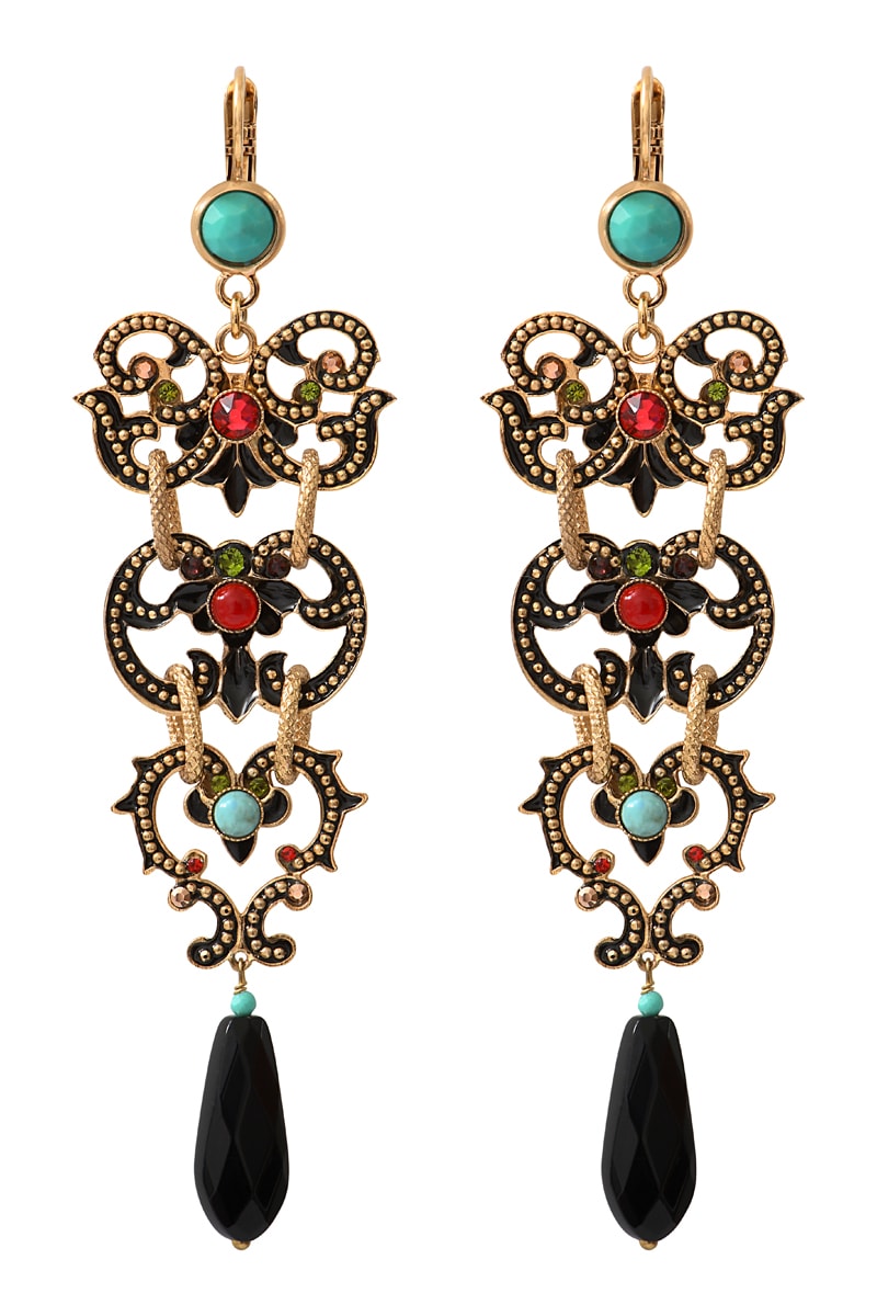 Boucles d'oreilles dorées à l’or fin jaune Ultima - Grenats, onyx, péridots et turquoises