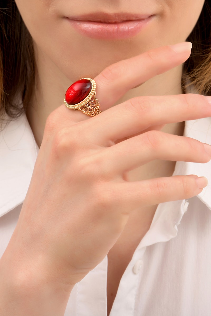 Bague dorée à l’or fin jaune Ultima - Grenat, onyx, turquoise et péridot