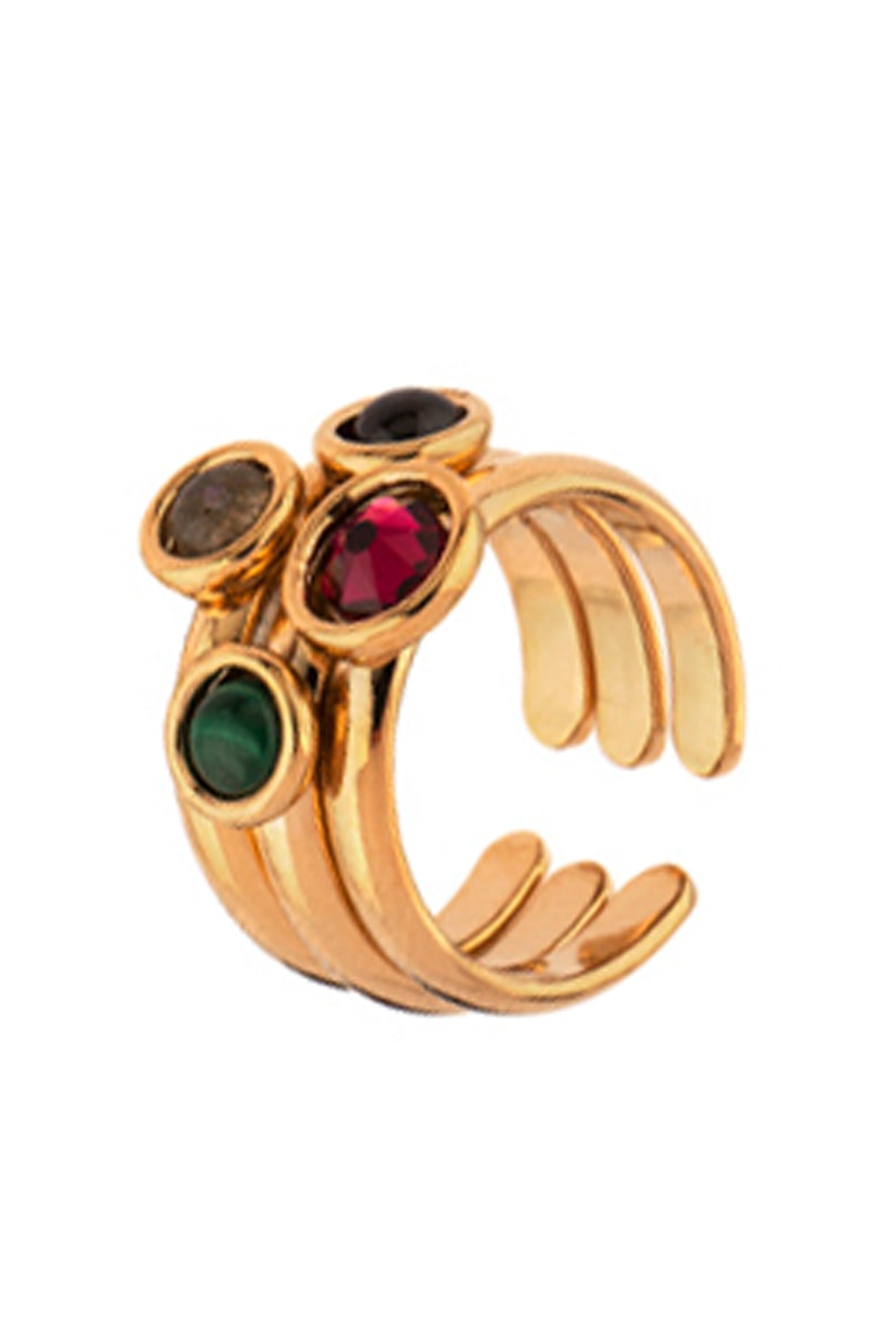 Bague dorée à l’or fin jaune Verone - Grenat, labradorite et malachite