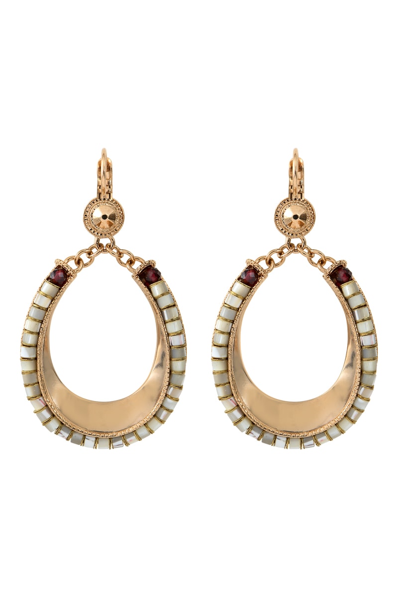 Créoles dorées à l’or fin jaune Ninon - Nacre et grenats