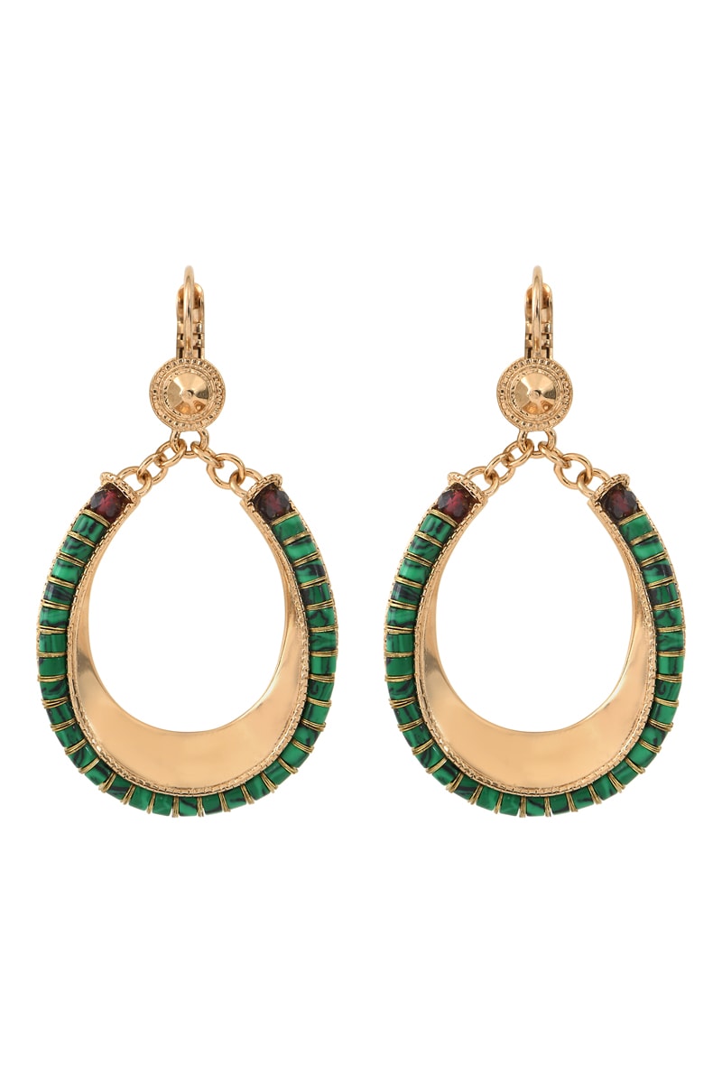 Créoles dorées à l’or fin jaune serties de 2 grenats et de perles d'imitation.