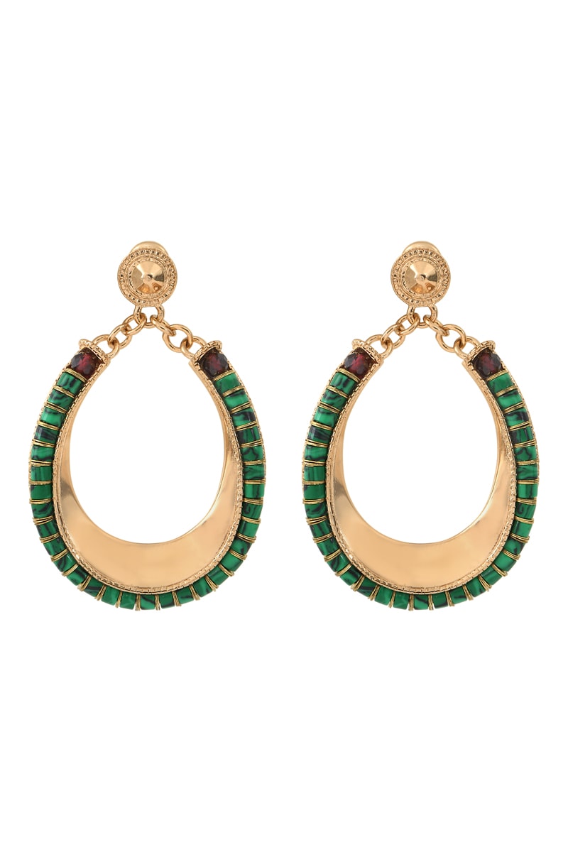 Créoles dorées à l’or fin jaune serties de 2 grenats et de perles d'imitation.