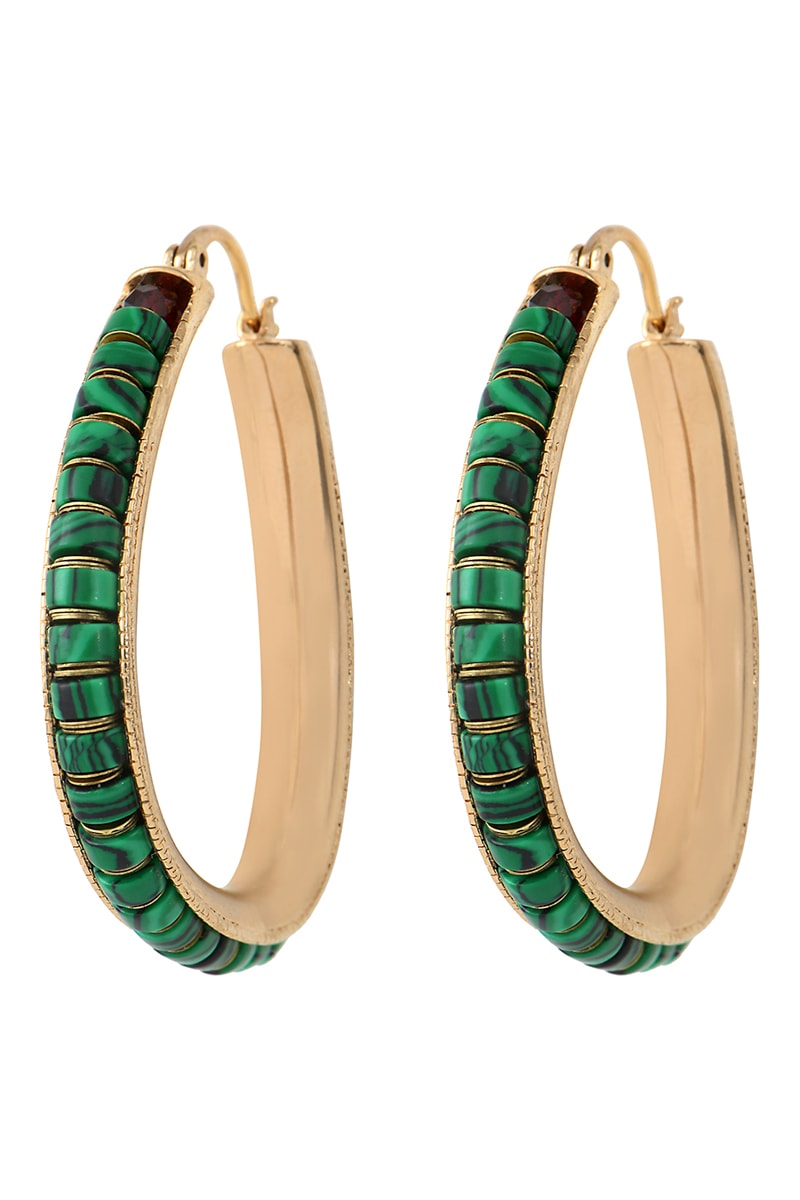 Créoles dorées à l’or fin jaune serties d'un grenat et de perles d'imitation.