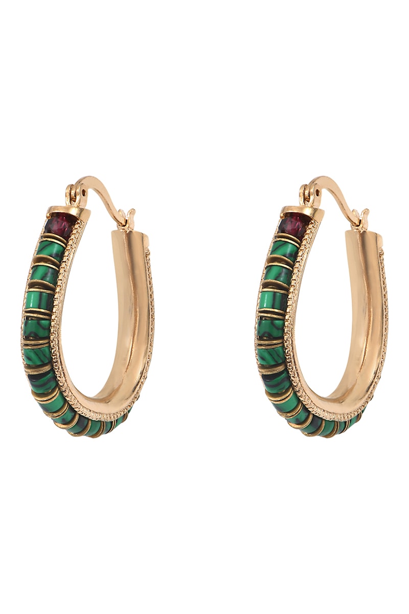 Créoles dorées à l’or fin jaune serties d’un grenat et de cristaux.