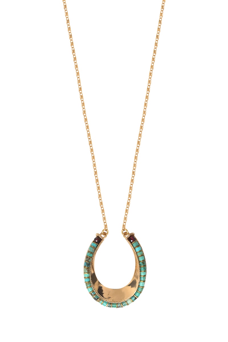 Pendentif serti de turquoises et 2 grenats.