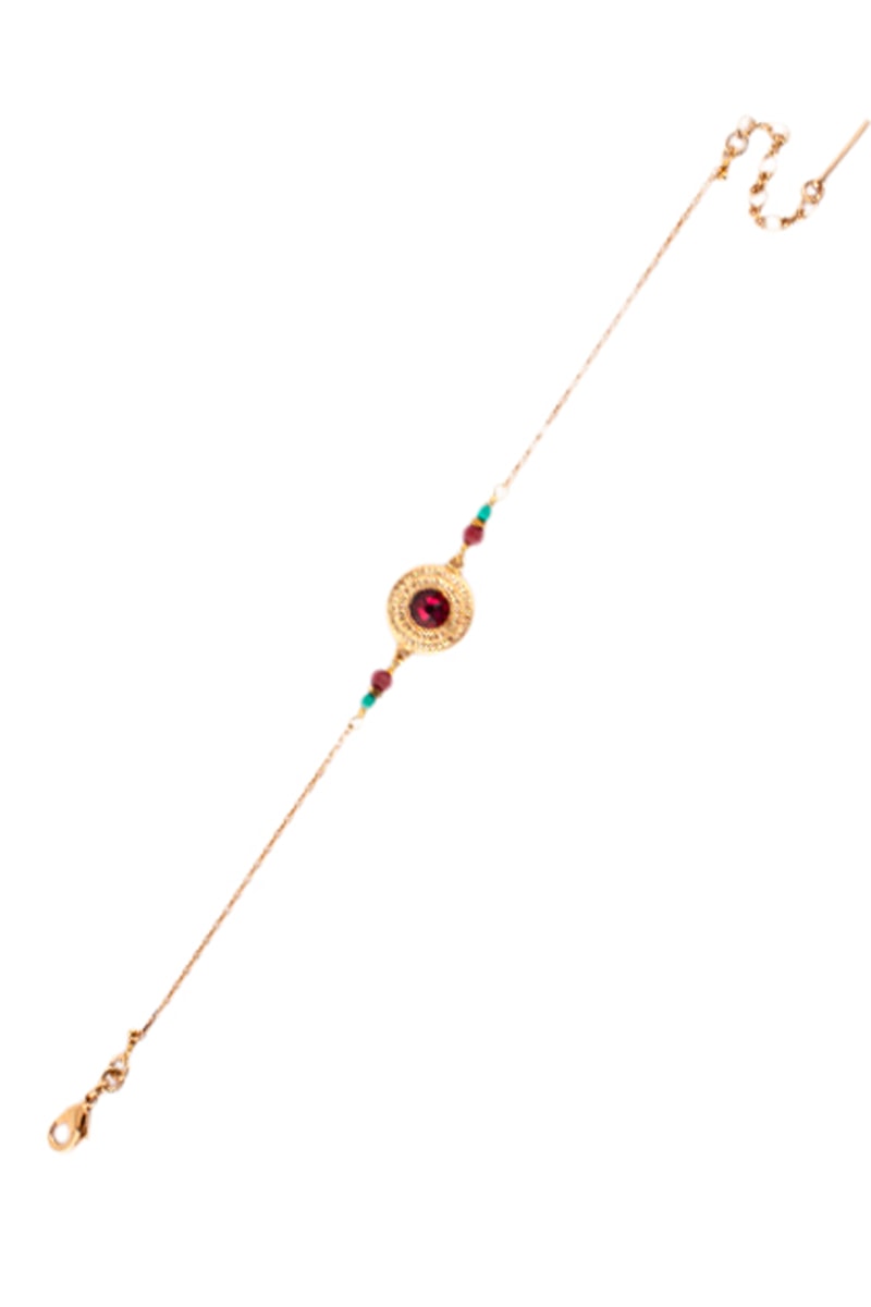 Bracelet doré à l'or fin jaune serti de nacre, de 2 jades de 2 amazonites, d'hématites, et orné de cristaux de Swarovski®.