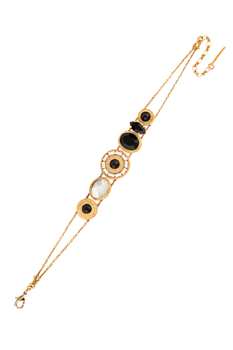 Bracelet doré à l’or fin jaune serti de 10 perles japonaises et de cristaux.