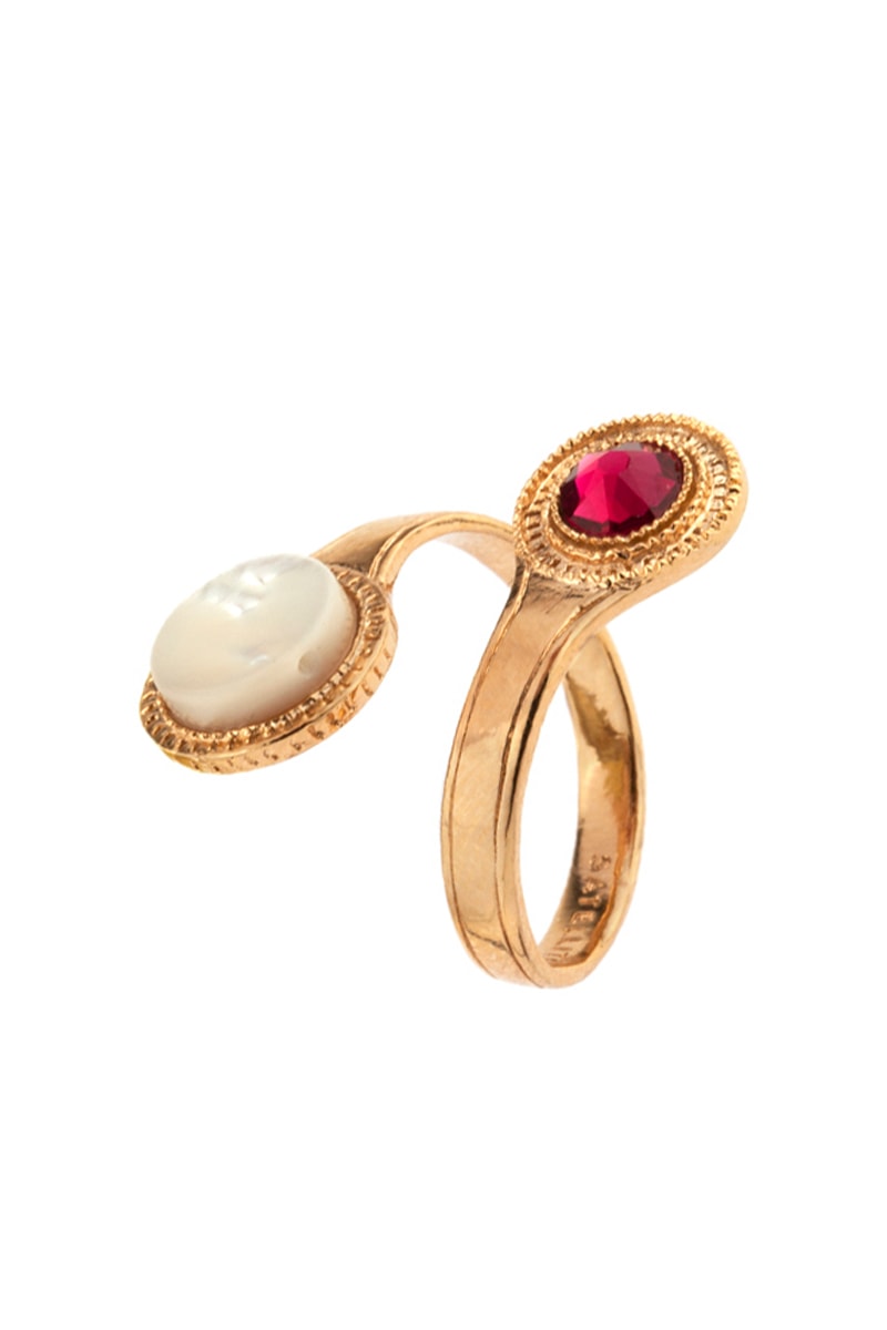 Bague réglable en plaqué or jaune sertie de nacre et ornée de cristaux Swarovski®.