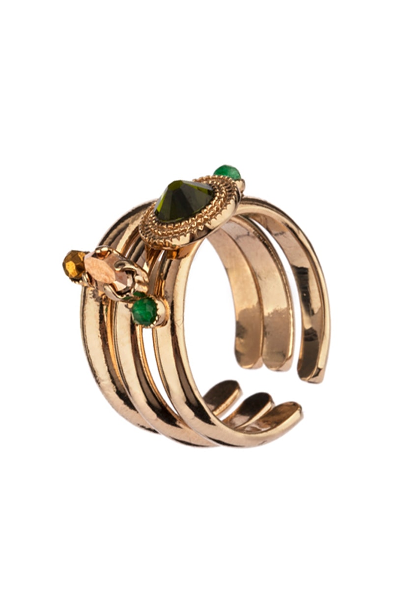Bague dorée à l’or fin jaune Fujita - Vert et kaki