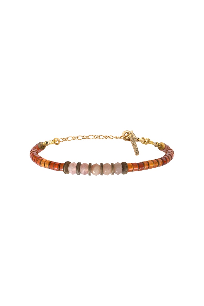 Bracelet doré à l’or fin jaune Asuka - Cornalines, pierres de soleil et hématites