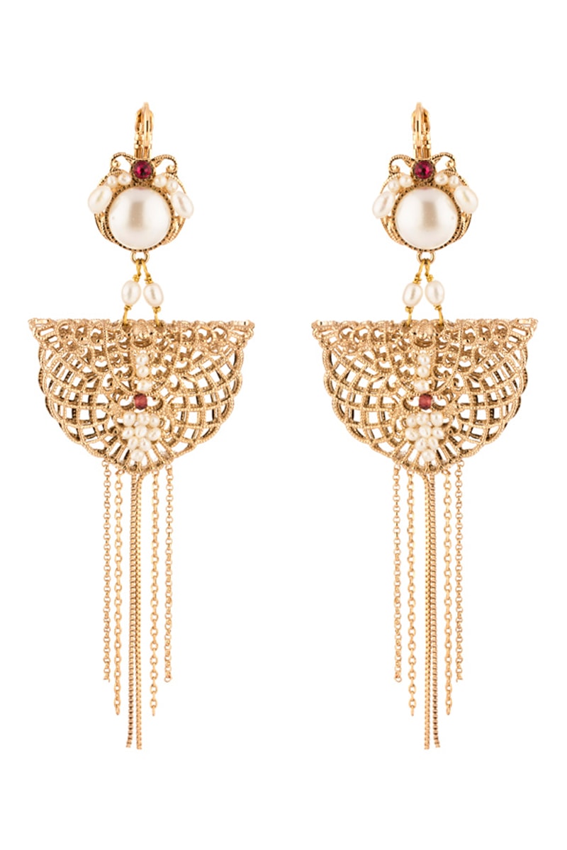 Boucles d’oreilles pendantes dorées à l’or fin jaune serties de 20 perles de culture d’eau douce et ornées de 2 cristaux Swarovski®.
