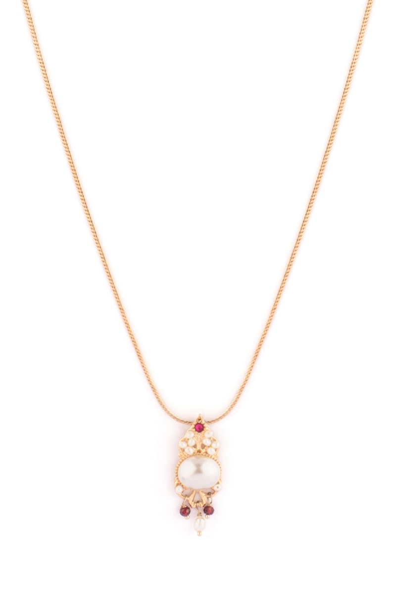 Pendentif serti de 3 grenat, d’une perles de culture d’eau douce et orné de cristaux Swarovski®.