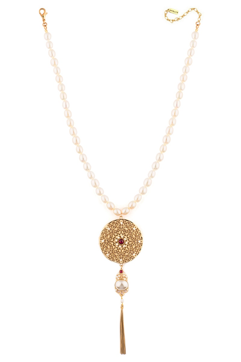 Collier en doré à l’or fin jaune serti de perles de culture d’eau douce et orné de cristaux Swarovski®.
