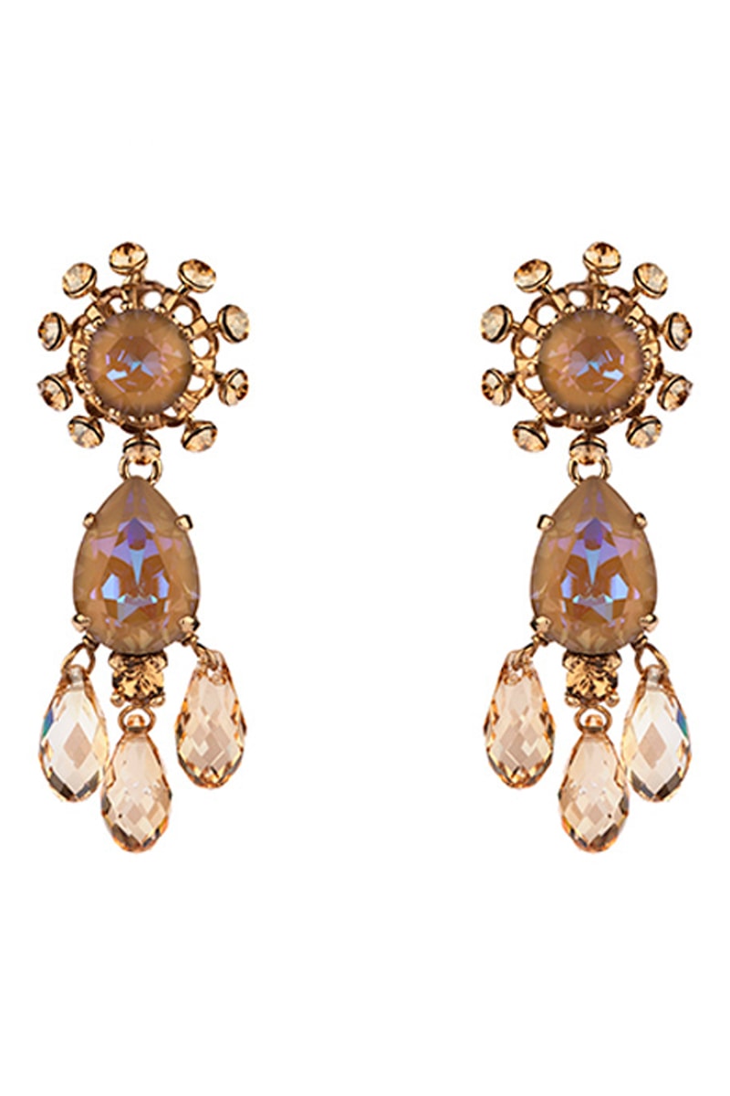 Boucles d’oreilles dorées à l’or fin serties de cristaux.