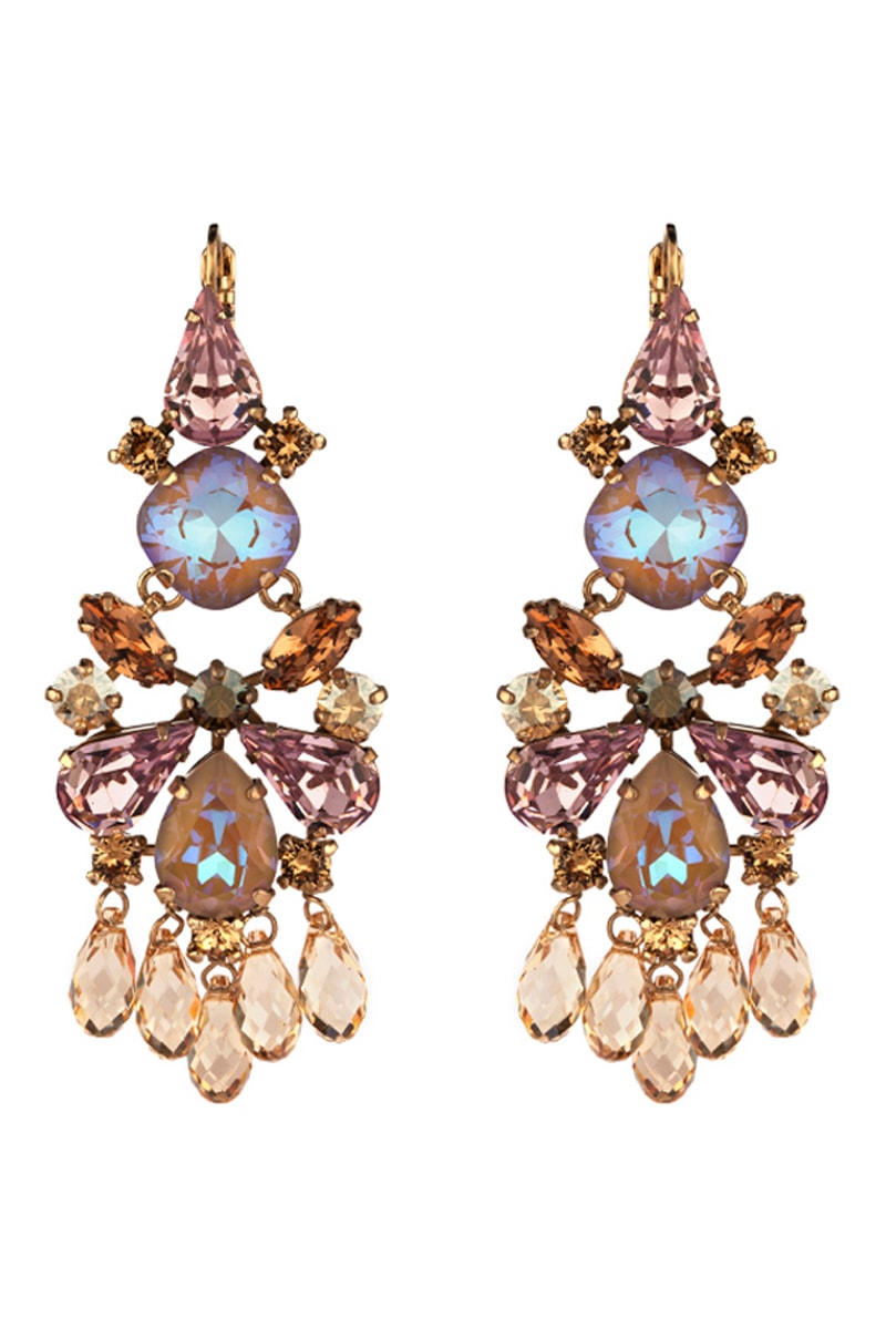 Boucles d’oreille dorées à l’or fin serties de cristaux, de perles d’imitation et ornées de cristaux Swarovski®.