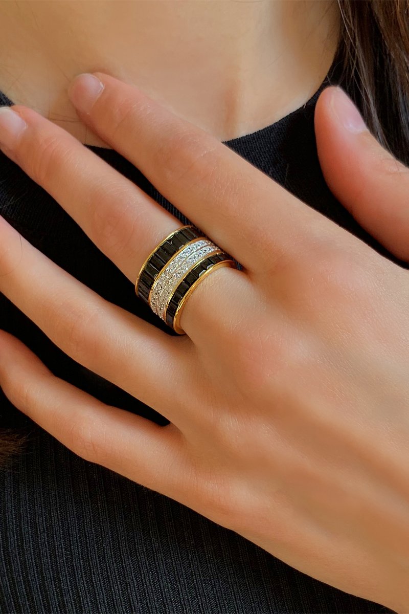 Bague en argent plaqué or jaune sertie de zirconiums.