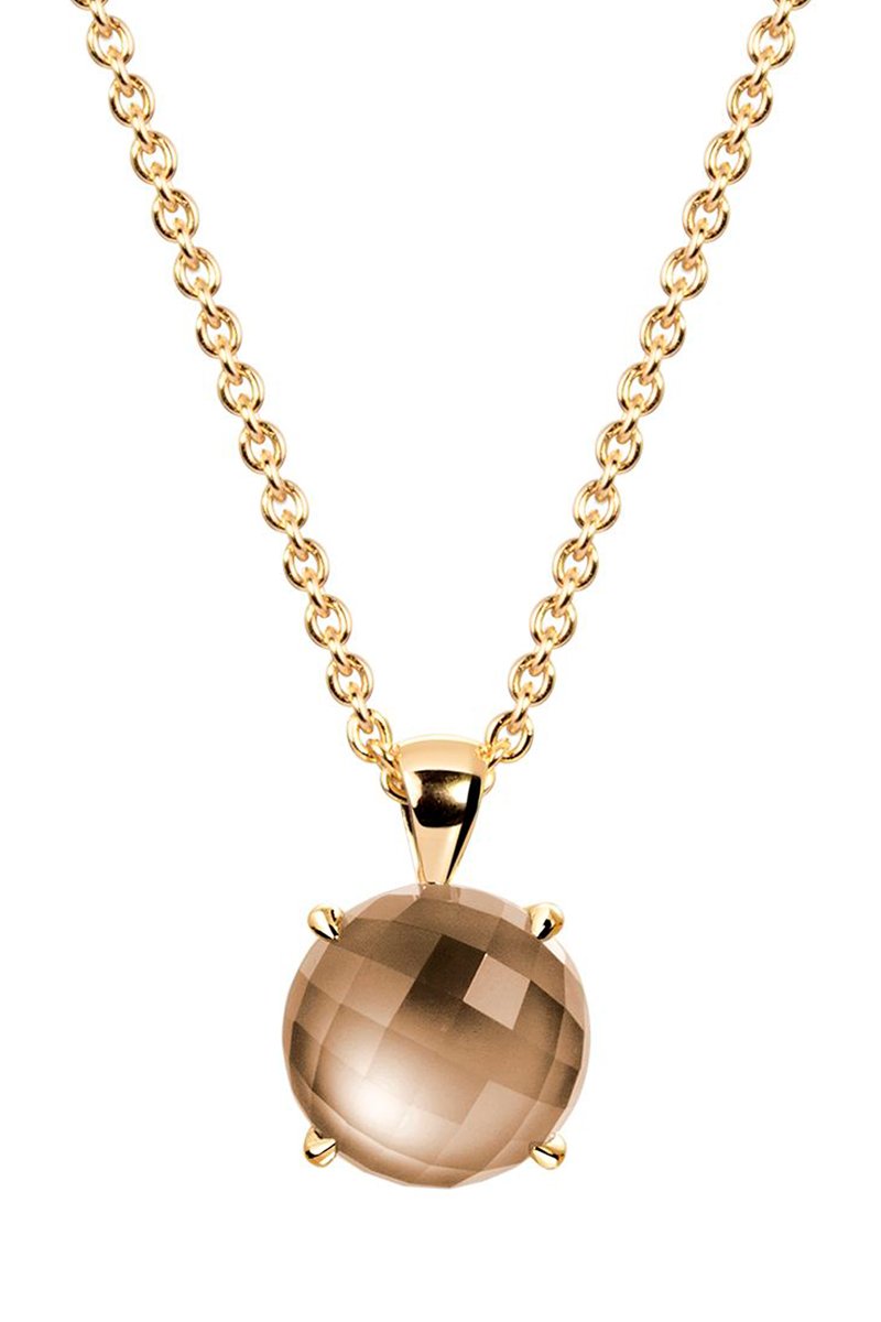 Collier - Argent plaqué or jaune et quartz fumé
